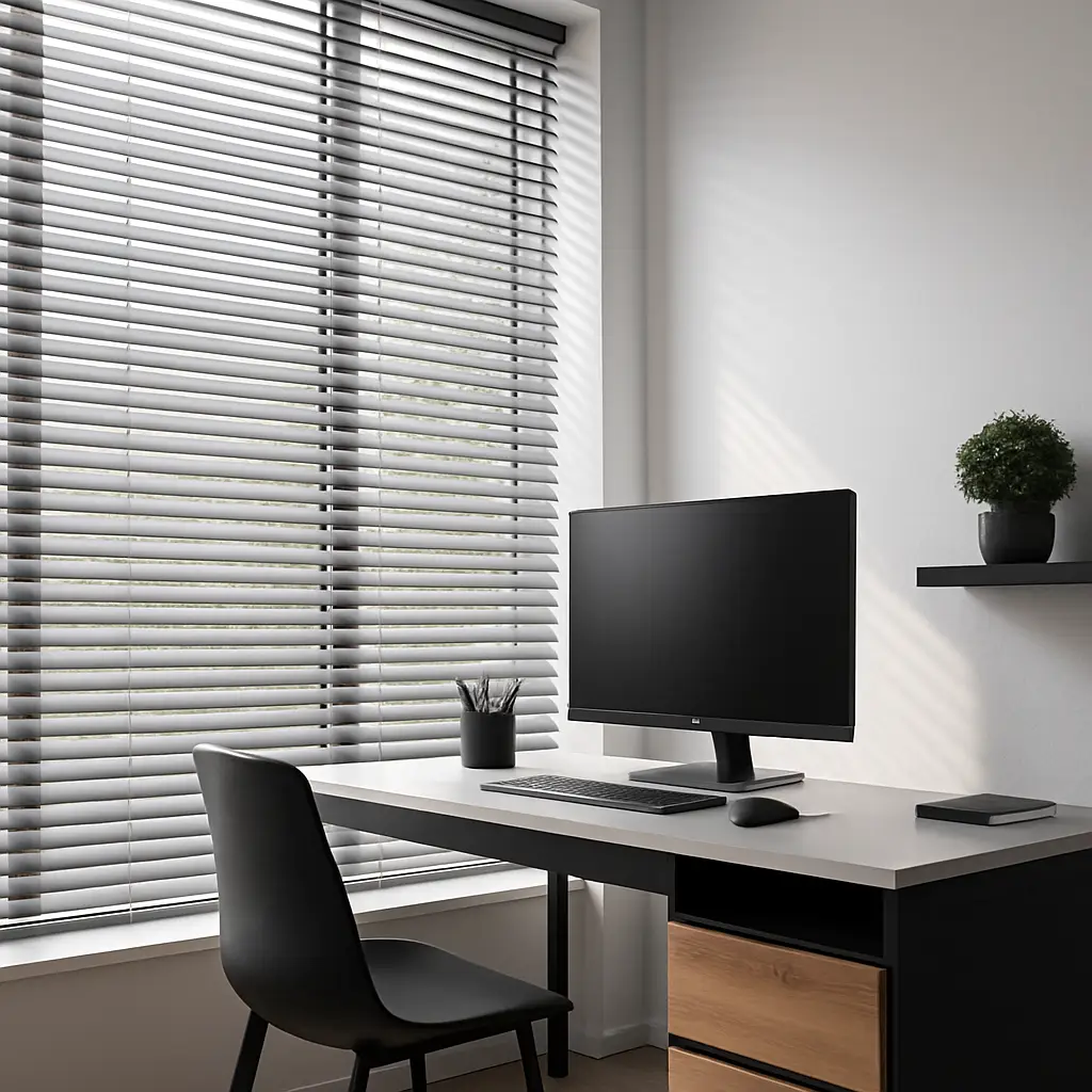 W połączeniu z miękkimi materiałami (dywan, zasłony, panel akustyczny) żaluzje skutecznie wygłuszą Twoją przestrzeń. Unikaj twardych, odbijających dźwięk powierzchni wokół stanowiska pracy.