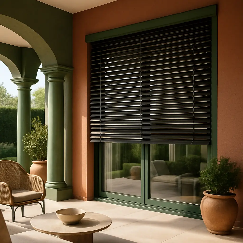 Taras to miejsce zmienne jak pogoda. Wybierz osłony okienne, które możesz błyskawicznie otwierać, zamykać i regulować – żaluzje fasadowe i shuttersy (szatersy) to podstawa.